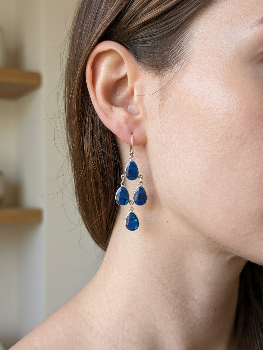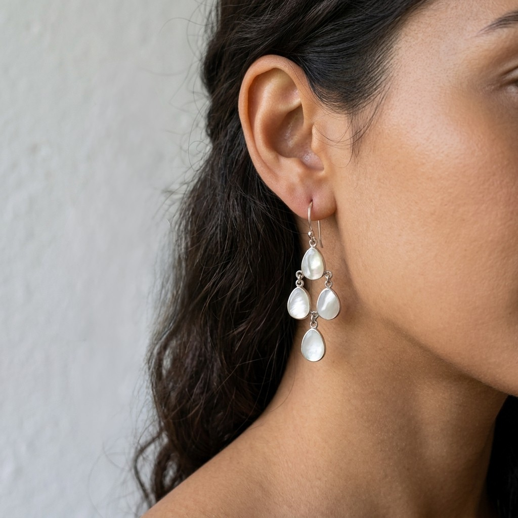 Boucles pendantes nacre et argent – 3 couleurs – Fait main à Bali