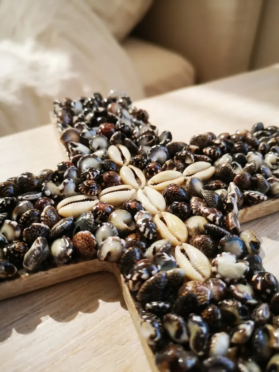- Une évasion au quotidien : L’alliance des coquillages noirs, blancs et cauris, c’est une invitation directe sur une plage de sable fin. Cette pièce apporte cette vibe de vacances et de déconnexion dont on a tous besoin, transformant votre maison en cocon apaisant et inspirant.