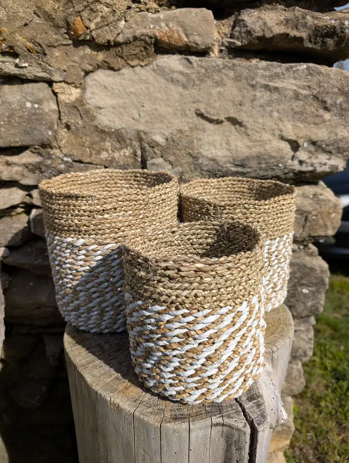 • Design bicolore élégant et polyvalence d’usage : décoration, cache-pot ou rangement.