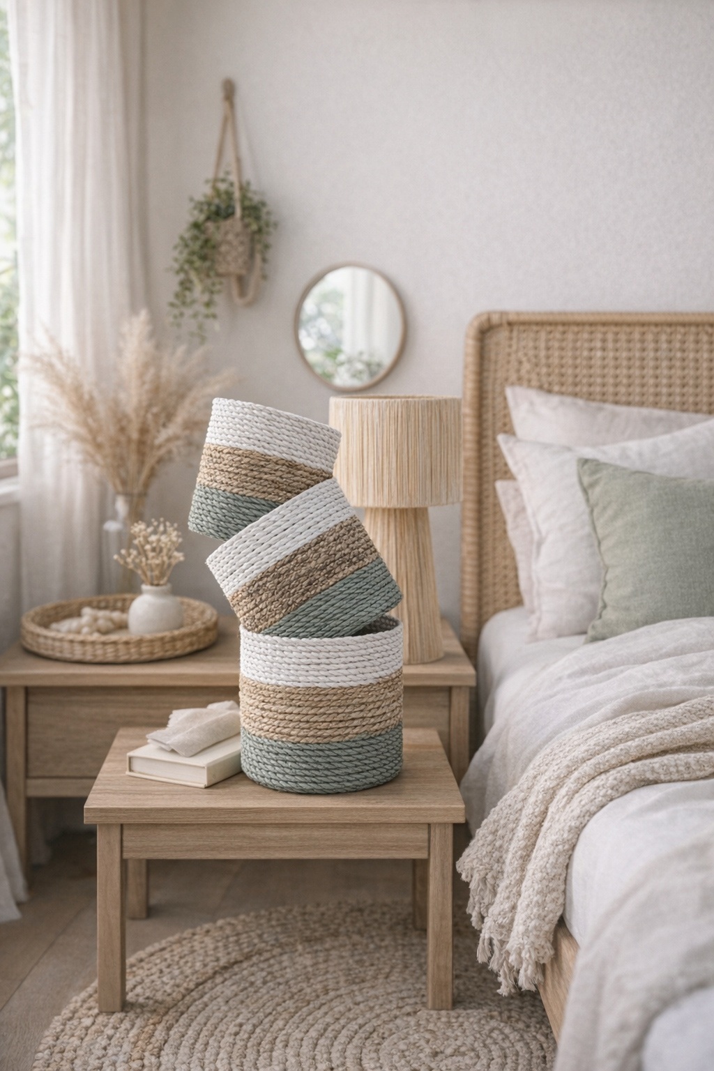 - La touche bohème authentique : oublie les objets sans âme. Chaque panier est une pièce unique, façonnée à la main avec passion. Ses textures naturelles et ses nuances douces apportent une chaleur et un caractère incroyables. C’est un petit bout d’artisanat qui raconte une histoire et transforme ta déco en un lieu qui te ressemble vraiment.